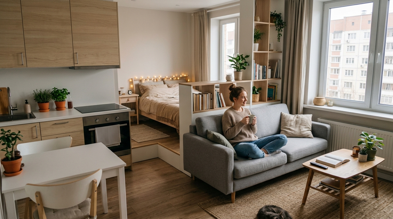 Знаете, жизнь в студии — это что-то вроде магии. Ну, или высокого искусства. Взяли одно-единственное помещение и должны умудриться втиснуть туда всё: и кухню, и спальню, и гостиную, и кабинет. И чтобы не было ощущения, что спишь на сковородке, а работаешь в гардеробной. Сложно? Ещё как! Но я вам скажу больше — это чертовски увлекательно. Сегодня разберем на косточках, как грамотно зонировать студию, будь она скромные 30 «квадратов» или уже вполне просторные 50. Готовы? Поехали!